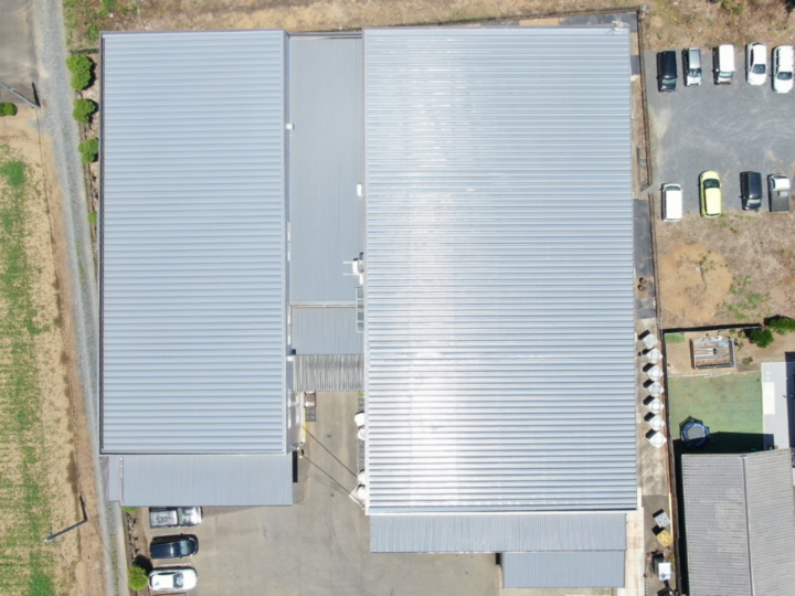 工事後は倉庫のように見えていた外観が一新され、清潔感のある工場らしい印象に。撥水性も実感でき、砂ぼこりが多い環境でも汚れが付きにくく助かっています。